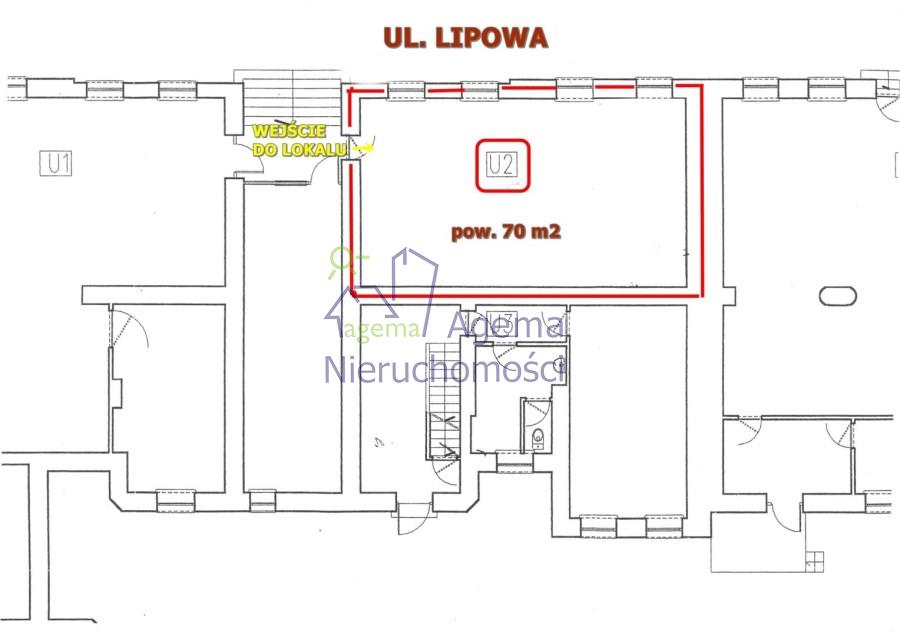 Lokal o powierzchni 70 m2 składa się z dużej sali sprzedażowej, pomieszczenia socjalnego, i łazienki z wc.
