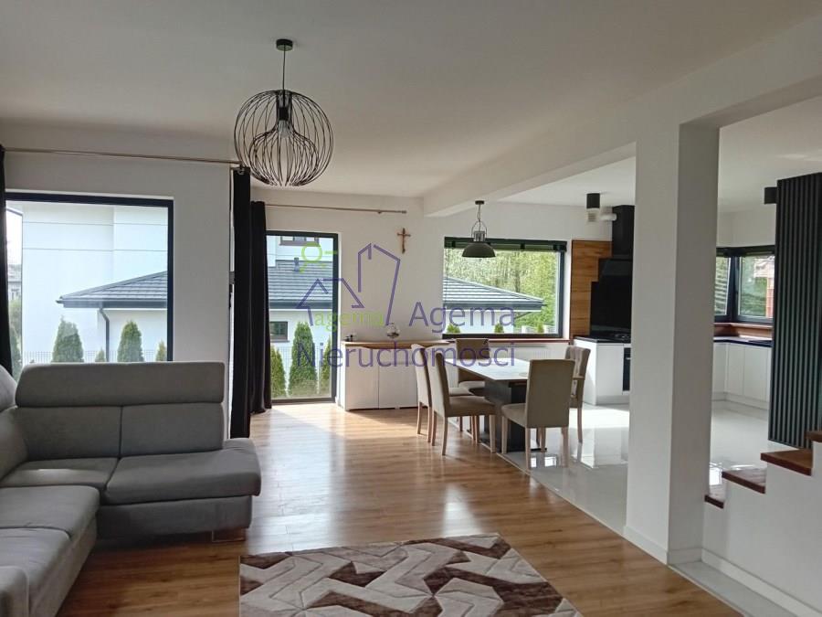Na sprzedaż nowoczesny dom wolnostojący z 2019 roku o powierzchni całkowitej 185m2. Dom został zbudowany z cegły ceramicznej, dach wykonano z blachodachówki, elewacja to tynk silikonowy.